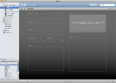 ファイルメーカーは、パーソナルデータベースの最新版「Bento 4」の無料評価版に、学生が日々の情報管理に利用できる「Bneto 4」用のテンプレートを付属した「Bento 4学生応援キット」を4月12日に無料公開した。