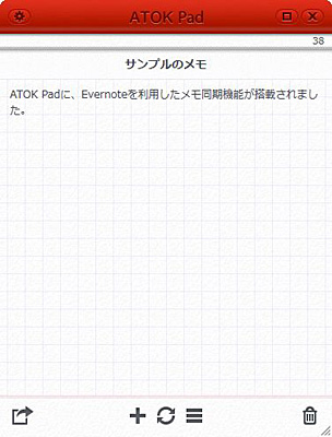このうち、iPhone/iPod touch版の「ATOK Pad for iPhone ver.2.0.0」と、Windows版の「ATOK Pad for Windows[ベータ4]」に、Evernoteとのメモ同期機能を搭載し、「ATOK Pad」をEvernoteクライアントのように利用できるようになった。また、Evernoteで作成したメモを「ATOK Pad」上で閲覧したり、編集したりすることもできる。これによって、さまざまなプラットフォームで作成した情報の共有や更新が可能になる。