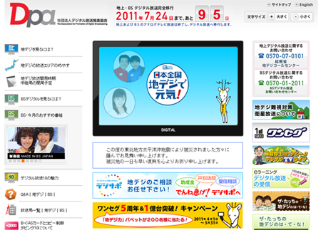 Dpaのウェブサイトでは、地デジ完全移行までのカウントダウンが表示されている