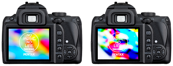 ボディはブラックをベースに、操作ボタンなどの印刷表示をチャコールグレーにした特別仕様。グリップは、1台ごとに柄が異なるマルチカラーグリップで、「PENTAX」ロゴは鮮やかなレインボーカラー。カメラ起動と終了時には、液晶モニタにタワーレコードのコーポレートボイス「NO MUSIC, NO LIFE.」のロゴが入ったレインボーカラーを表示する。最新のファームウェアをベースにした専用ファームウェアをインストールしている。