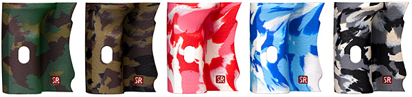 追加となるグリップラバー。左から迷彩(カーキグリーン)、迷彩(カーキブラック)、マーブル(レッド×ホワイト)、マーブル(ブルー×ホワイト)、マーブル(ブラック×ホワイト)