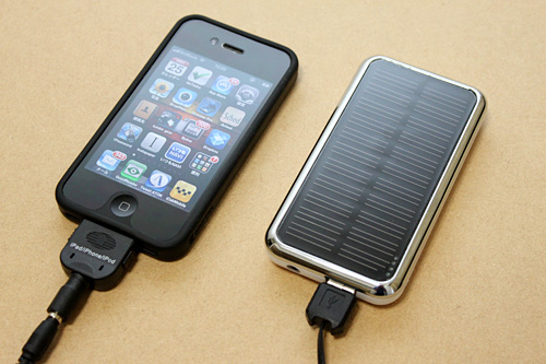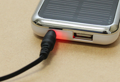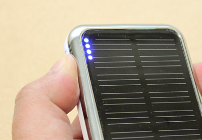 最大の魅力は、バッテリの容量が3500mAhと大きいこと。定格出力は5.5V、750mAと高いので、充電時間が短くて済む。例えばiPhone 4なら、0%から充電開始して、約90分で80%まで充電できる。また、充電に大きな電力を必要とするiPadにも対応している。実際に接続してみると、普通に充電できた。ただし、iPadのバッテリは6600mAh前後なので、「mobile solar L」だけではフル充電することができない。