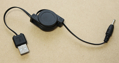 電源ケーブルのコネクタは、一方がUSB端子で、もう一方は電源コネクタになっている。デジタル機器に給電するときは、付属の端末専用コネクタを電源コネクタに装着して利用する。ケーブルは巻き取り式で、コンパクトにまとめて持ち運びしやすい。