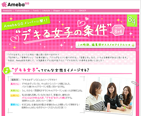 特設サイト「AmebaGGメンバーに聞く!“デキる女子の条件”with 8×4」のトップページ