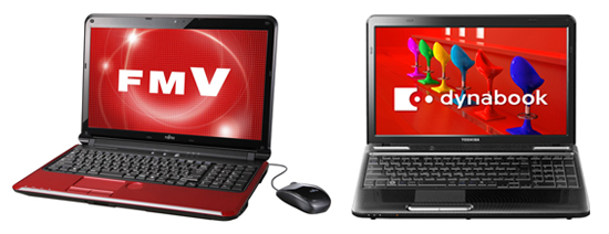 左から、富士通「FMVA56C」(ルビーレッド)、東芝「PT35034BSF」(プレシャスブラック)