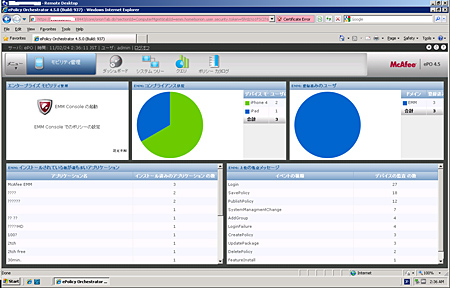 「ePO」のメイン画面。「ePO」導入企業は使い慣れた画面で「EMM」を操作できる