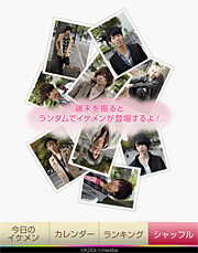 「イケメン日めくりカレンダー」のスクリーンショット(シャッフル機能)。端末を振ると、イケメンの画像がランダムに表示される