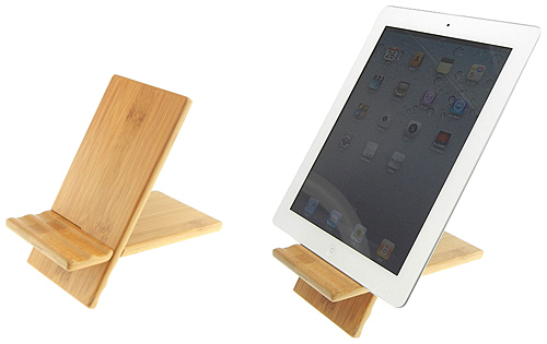 組み立て式タブレット用竹製スタンド(iPad 2を立てかけたイメージ)