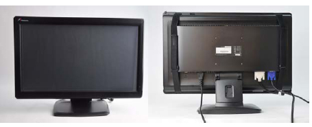 液晶ディスプレイの装着イメージ(左から、前面、背面)
