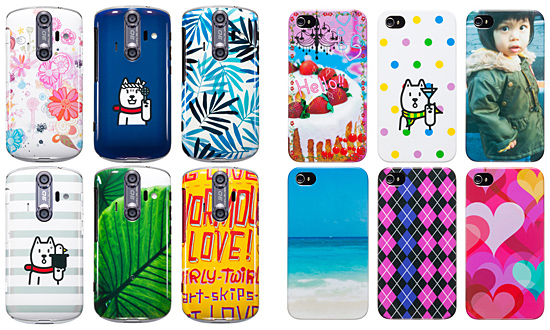 「カバコレ」デザイン例(左から6点ずつ、SoftBank 006SH用電池カバー、iPhone 4用ケース)