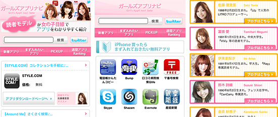 「ガールズアプリナビ」のスクリーンショット(スマートフォンでの表示)