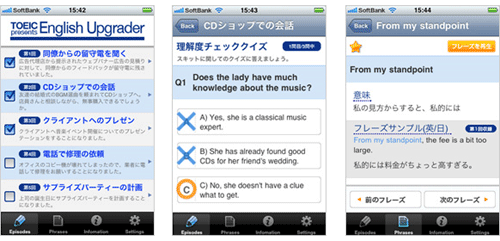 日本でTOEICテストを実施・運営する財団法人国際ビジネスコミュニケーション協会(IIBC)は、5月25日、日本初のスマートフォン用TOEIC公式英語学習アプリ「TOEIC presents English Upgrader」と「TOEICカレンダー」をリリースした。