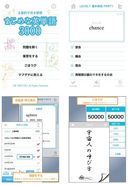 アルタビスタライズ、ユルくて笑えるiPhone用の英単語学習アプリ「まじめな英単語3000」