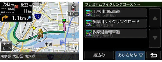 このデータを収録したソニーのポータブルナビ「NV-U37」では、自転車ルートを優先したルート探索やサイクリングロードの検索ができる。