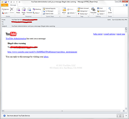 マカフィーは、「McAfee Labs ブログ」で、YouTubeからの警告を装ってユーザーにソーシャルエンジニアリングを仕かけるスパムキャンペーンへの注意を呼びかけている。