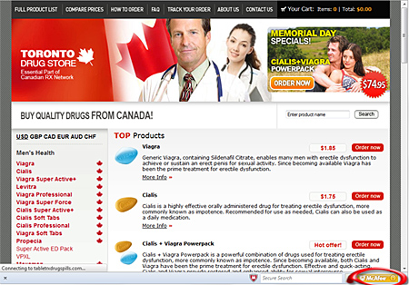 最近確認した「YouTubeからの警告を騙るスパム」は、YouTubeに投稿された不正動画に関する警告を装い、メール内のリンクをクリックすると、マカフィーの安全評価ソフト「SiteAdvisor」では「疑わしいサイト(黄)」と評価している「カナダ」の薬局のサイトに飛ばされる。