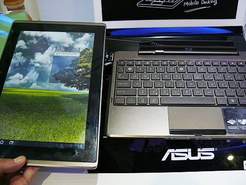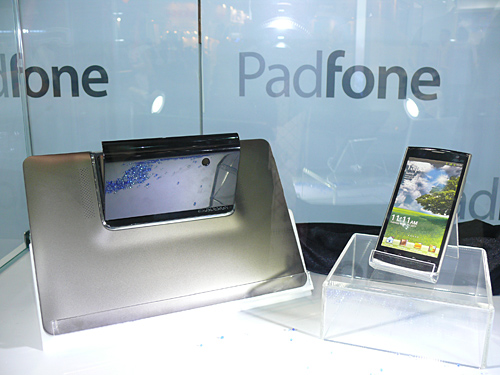 ASUSのブースでは、記者会見で披露したスマートフォンを内蔵するタブレット端末「Padfone」も披露している。