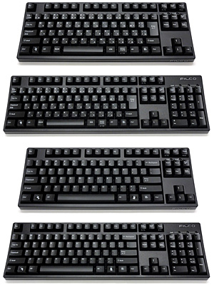 キー配列は、標準的な108キー日本語配列と、104キーUS ASCII配列のフルキーボード、省スペースな91キー日本語配列と、87キーUS ASCII配列のテンキーレスキーボードの4種類。Nキーロールオーバー(複数キーを同時に押したときにすべてを読み取る機能)に対応し、PCへのデータ転送レートを最大まで高め、高速なレスポンスを得ている。