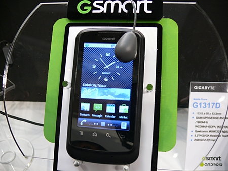 「GSmart」は、OSがAndroid 2.2で、2枚のSIMカードを搭載することができるデュアルSIMカードが売り。その使用感を多くの来場者が試していた。