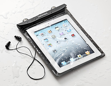 「iPad防水ケース」は、iPad/iPad 2を収納したままで操作でき、水や汚れを気にせずに使える特殊加工の防水ケース。本体は三層のジッパー構造で、IPX8の高い防水性能をもつ。裏面にはカメラ用の窓があり、ケースに入れたまま撮影できる。収納スペースには多少の余裕があるので、iPadと一緒に「Pocket WiFi」などを入れることができる。