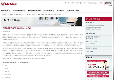 McAfee Labs ブログ「世界で最もゾンビの多い国ランキング2011」