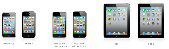 iPhone、iPod touch、iPadともに2世代前の機種までサポートする