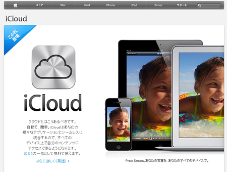 アップルのサイトの「iCloud」の紹介ページ