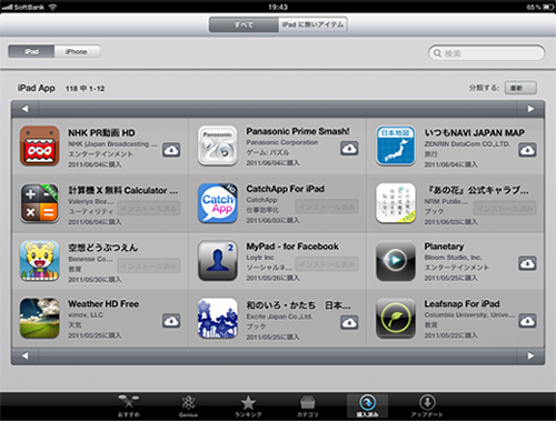 iOS 4.3を搭載したiPad 2の「App Store」に「購入済み」の項目が追加された。