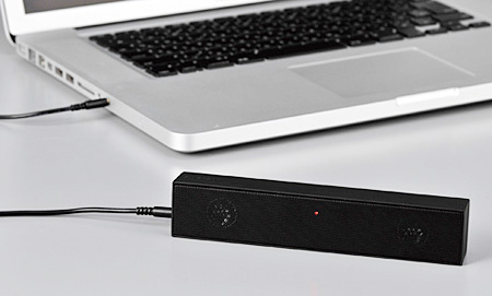 「ポータブルアクティブスピーカー<X-ViZ>」は、ノートPCやスマートフォンとの接続を想定。携帯性にすぐれるだけでなく、オーディオテクニカとの共同開発による本格的な高音質を実現した。
