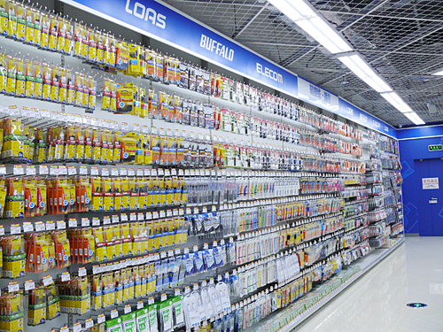 店舗は地上1階から5階までの5フロアで、面積は約1万5000m2。市内でも最大規模の商業店舗で、ヤマダ電機にとっても超大型店舗の位置づけだ。家電製品を中心にオモチャや化粧品など、約100万点を揃える店内は、来店者が多くてもスムースに通ることができるように広い通路を確保している。