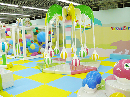 オモチャコーナーには有料の子どもの遊び場も。ここで子どもを遊ばせることが来店者のステータスだという