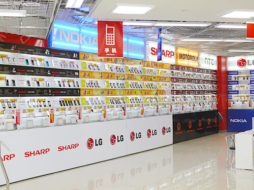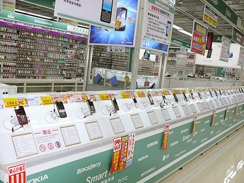 店の顔である1階は、若者を中心に人気の高い携帯電話やスマートフォンのフロア。