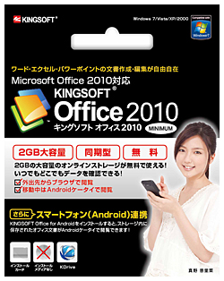 キングソフトは、オンラインストレージサービス「KDrive」や、Android端末用のオフィス文書閲覧ソフト「KINGSOFT Office for Android」と連携するオフィスソフト「KINGSOFT Office 2010 MINIMUM版」を、6月17日に発売する。価格は4280円。同時に、キングソフト全製品のイメージキャラクターとして、歌手の真野恵里菜さんを起用する。