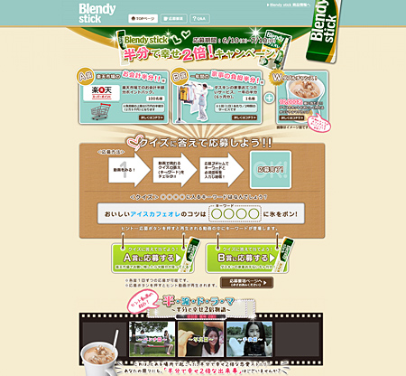 「Blendy stick “半分で幸せ2倍”キャンペーン」のページ