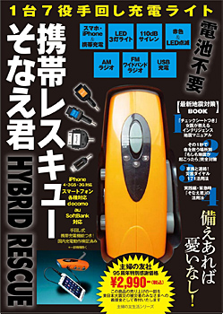 主婦の友社、地震対策本と手回し充電ライトのセット、『1台7役手回し充電ライト 携帯レスキュー そなえ君』
