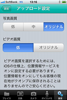 また、iPhoneに保存した写真ファイルを複数まとめてアップロードできるようになった。アップロードするファイルの圧縮設定に対応したこことで、動画ファイルを高画質のままで保存したり、容量の大きな写真ファイルを圧縮してすばやくアップロードしたりできる。