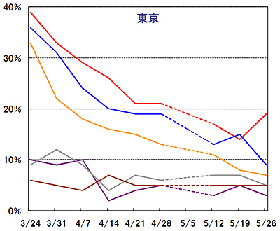 今回の記者会見では、調査会社Kantar Japanのオンラインパネルによるトラッキング調査を用いて今後の消費動向を分析した。道越エグゼクティブアナリストは、「東京では、震災後にレジャー施設の利用を控えたり、洋服の購入などを控えたりした消費者が30~40%を占めた。しかし、その傾向は徐々に治まり、10~20%まで下がっている」として、「人々が次第にお金を使う動きになっていく」との見解を示した。