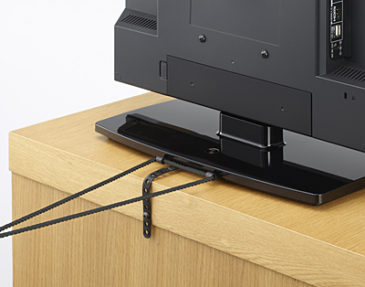 卓上スタンドは安全性を考慮し、木ネジで直接固定できる転倒防止ネジ穴、テレビ台などの背面に垂らして木ネジで固定する転倒防止バンド、壁や柱にヒモとクリップと木ねじを使って固定するフックの3種類の転倒防止機能をもつ。卓上スタンドとバッテリパックを含むサイズは、幅45.4×奥行き20.4×高さ34.2cm、重さは5.0kg。