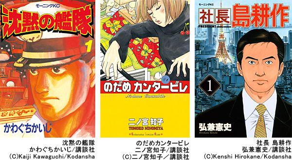 (左から『沈黙の艦隊』『のだめカンタービレ』『社長 島耕作』