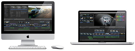 一からつくり直したという新バージョン「Final Cut Pro X」は、最新のMacのハードウェア性能とソフトウェアをフルに利用できる64ビットアプリケーション。柔軟なトラックレスのキャンバスで編集ができるマグネティックタイムライン、コンテンツの自動解析、バックグラウンドレンダリングなどの新機能を搭載する。SDから4Kまでの画像サイズに対応。オーディオ編集と色校正の強力なツールも搭載し、一つのアプリでポストプロダクションワークフロー全体を行うことができる。