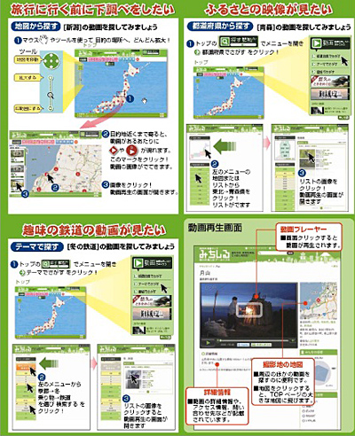 動画のジャンルは、自然、暮らし、文化、産業、歴史、趣味、グルメなど。当初400本でスタートし、来年3月末までに約1500本まで増やす計画だ。特集も配信し、7月に「東北4県応援特集」「大河紀行特集」、8月に「鉄道」を予定している。10月以降は視聴者からの投稿画像の受付けを開始し、その画像もサイトの地図にマッピングしていく。