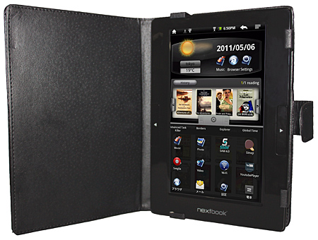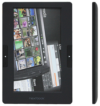 「nextbook M703U」は、解像度800×480ドットの7インチ液晶、Android 2.1を搭載したタブレット端末。重さ約350gと軽く、片手で扱える厚さ約11.2mmの薄型・軽量ボディで、手軽に持ち運べる。