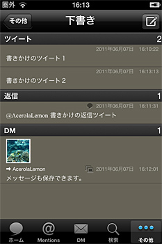「パワーアップKit」を導入すると、複数のツイートやダイレクトメッセージを下書き保存できるようになる