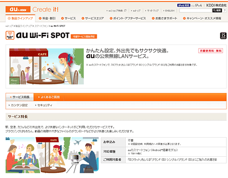 KDDI、公衆無線LANサービス「au Wi-Fi SPOT」開始
