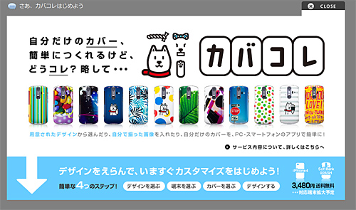 PCサイトやスマートフォンアプリからオリジナルカバーをデザインして注文する「カバコレ」