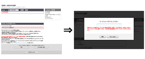 「カバコレデザインカード」を利用するときは注文画面で「サービスコード全額支払い」を選ぶ