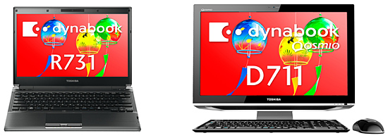 コンパクトノートPC「dynabook R731/W4UC」(左)と液晶一体型AVPC「dynabook Qosmio D711/WTTCB」