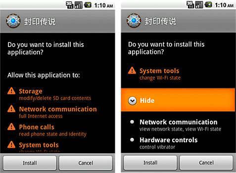 なかでも、Android OSの脆弱性を突いてルート権限を奪取しようとする「Android/DroidKungFu」は、端末情報を外部サーバに送信してルート権限を奪取し、「Android/DroidKungFu」に含まれているアプリケーションをシステムディレクトリにインストールする。脆弱性を突く実行ファイルが暗号化され、より検出しにくくなっている。