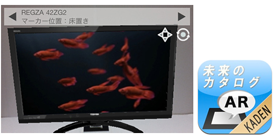 東芝は、AR(拡張現実)技術を活用し、スマートフォンや携帯電話を使って液晶テレビ「レグザ」の設置シミュレーションができるネットワークサービス「【AR家電】未来のカタログ」のiOS版アプリを公開した。アップルが運営する「App Store」から無料でダウンロードできる。