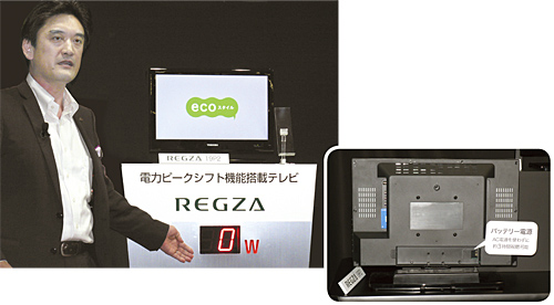 東芝は、バッテリで約3時間視聴できる19V型液晶テレビ「レグザ 19P2」を7月上旬に発売。停電などで地デジアンテナが使えないとき、付属のワンセグ用アンテナを使ってワンセグ放送を視聴できる製品だ。東芝デジタルプロダクツ&サービス社の長嶋忠浩・デジタルプロダクツ&サービス第一事業部長は、販売店などからの評価を受け、当初の見込みの倍に当たる「月産1万台を目指す」との目標を示している。